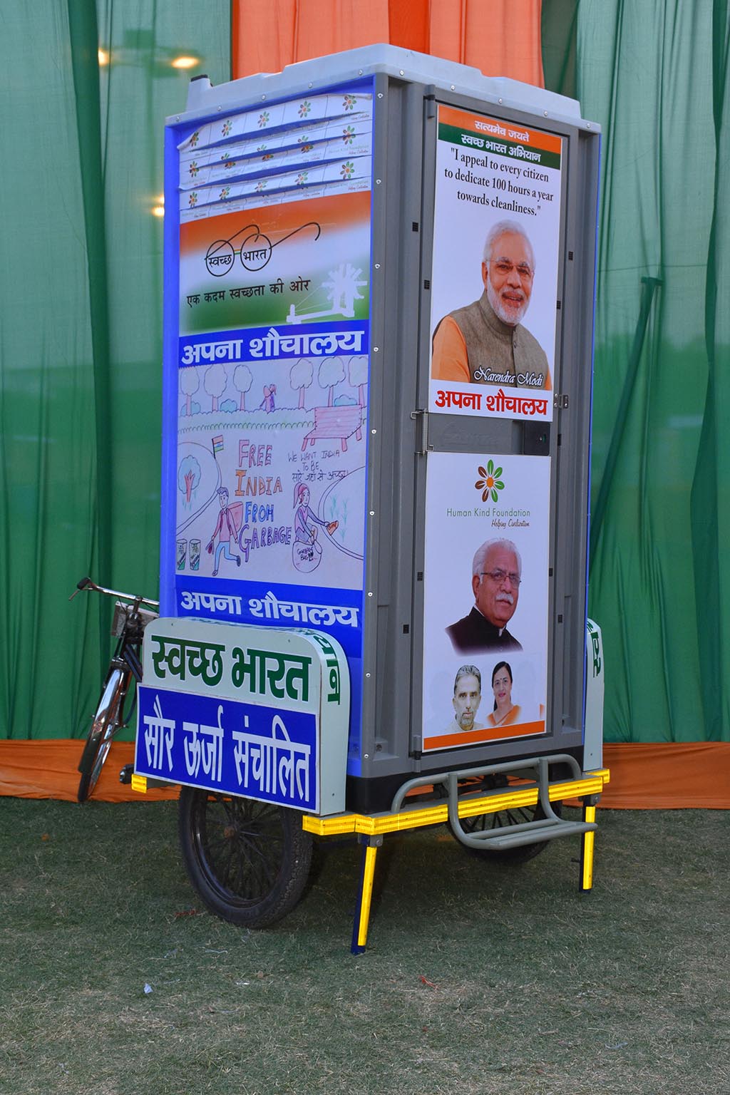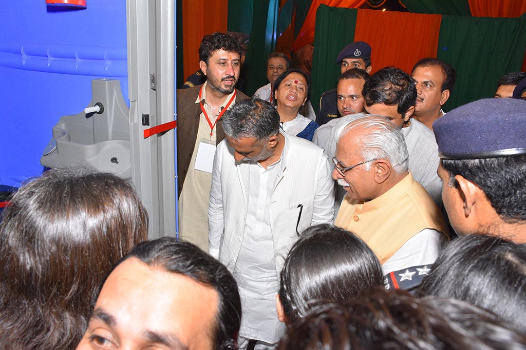 It is inaugurated by elected members of Indian Government : Hon'able Chief Minister of Harayana province Mr Manohar Lal Khattar along with Member Parliament of Faridabad Mr Krishan Pal Gujjar and Member Legislative Assembly of Haryana Mrs Seema Trikha on 7th of October 2015 through Human Kind Foundation, a NGO which will be taking these Toilets on rent or outright purchase in near future. This inauguration was done in presence of press members, Industrialists and all whos and who of City.