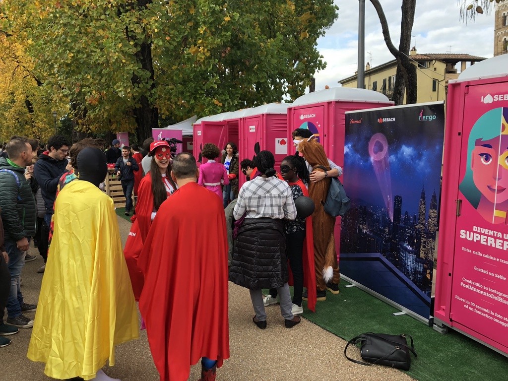 Many people accepted our challenge to enter the cabin, dress up as superheroes and have fun in our 360° photo booth with funny accessories. Ladies, groups of friends, mothers and daughters: the portable toilets’ revolution generated a lot of buzz, but also genuine curiosity and laughter. We can definitely name it an Her(g)oic weekend!